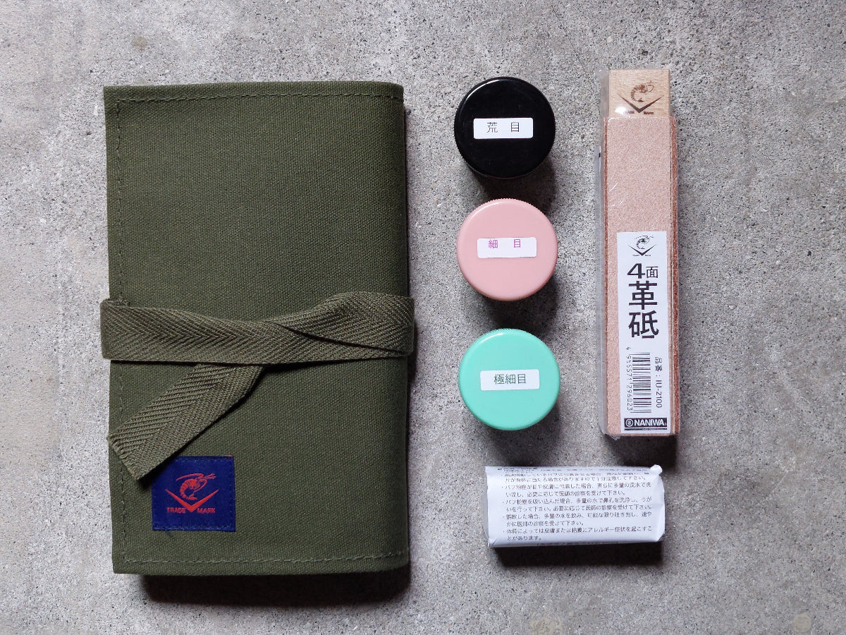 LC-0040 刃物メンテナンスセット 革砥/磨き粉/青棒 収納ケース付